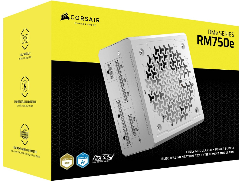 CORSAIR RMe Series Fully Modular Low-Noise Power Supplies include a dedicated 12V-2x6 GPU power cable, ATX 3.1 certification and PCIe 5.1 compliance, and Cybenetics Gold rated efficiency for a quiet, reliable build. The RMe PSUs' compact size also allow for easier cable management.